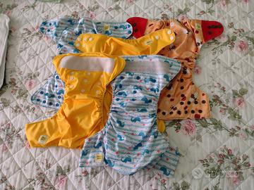 Buone condizioni, utilizzati a larga rotazione e solo in casa (uso misto coi pannolini tradizionali) e sempre curati con attenzione, lavati, strippati, no asciugatrice. Vendo lavato ed igienizzato, causa spannolinamento.
