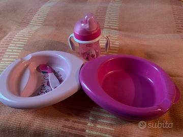 Chicco Set Composto da Tazza Training Cup, Primo Cucchiaio, Piatto Pappa Calda, Facile, Età 6 Mesi +, Rosa