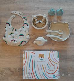 Set pappa in silicone praticamente nuovo. usato pochissimo solo il piatto grande con cucchiaino.