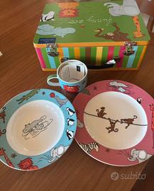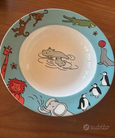 Dispone di tazza, piatto per primo e piatto per secondo.