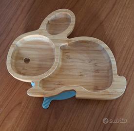 piattino Kokokids in bambù e bavaglino Avent in silicone impermeabile