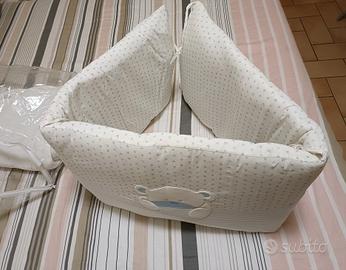 Vendo set paracolpi, copripiumino e piumone per letto bambini. Leggermente ingiallito il paracolpi in alcuni punti ma in buone condizioni.