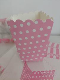 Set Party Nascita Rosa: 12 Biberon Portaconfetti + 42 Scatole Popcorn