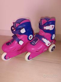Set Completo pattini per bambina. casco regolabile, ginocchiere, polsiere, gomitiere. pattini regolabili in varie misure, da 26 a 28.