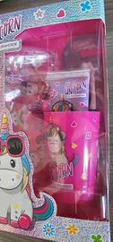 Vendo due set identici di marca Naturaverde modello "Be a unicorn". Nuovi mai aperti. Il set per l'igiene orale dei bambini comprende spazzolino con setole morbide e dentrifricio al gusto di fragola da 75ml, bicchiere e pochette in pvc con paillettes. Ottima come idea regalo. Un set solo: € 8. Due set insieme: € 14