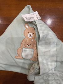Set per neonato in cotone, unisex. Taglia 0-1 mese. Il set comprende una copertina con cartellino in cotone, una tutina intera con piedini e bavaglino coordinato. Tutto nuovo con cartellino, mai usati. Sono un regalo