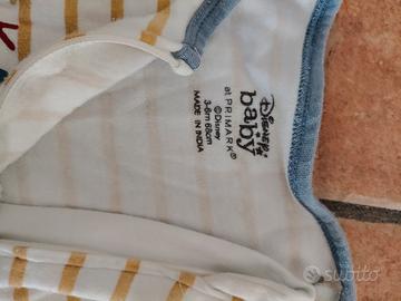 Set composto da due pigiamini Disney baby Mickey Mouse (Topolino). Disney per Primark. Utilizzati ma in ottime condizioni. Tutine intere con comoda cerniera. Taglia 3-6 mesi (68 cm).