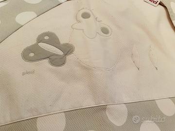 Vendo set per lettino da bambino marca Picci modello Ballon Colore bianco e grigio chiaro. Il set è composto da piumone e sacco piumone di 70x120 cm, paracolpi di 50 x 192 cm e federa di 40x60 cm. Il tutto in confezione originale.