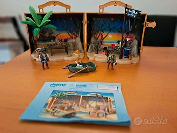 Cofanetto a forma di forziere con set “Isola dei pirati”, marca Playmobil.