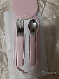 Set Posate per Bambini con Custodia Rosa astuccio con forchetta e cucchiaio