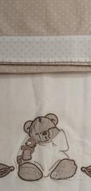 vendo set Prenatal bianco e beige per lettino con sponde, composto da: 1 trapunta (copripiumino+sacco imbottito), 1 paracolpi, 2 lenzuoli sotto, 2 lenzuoli sopra, 1 fodera cuscino. Trapunta e paracolpi come nuovi, lenzuola in ottime condizioni. Ritiro a carico dell'acquirente con formula visto e piaciuto.