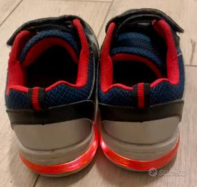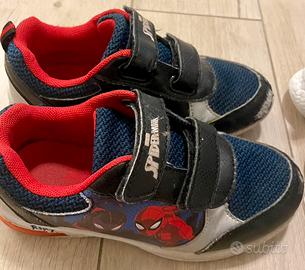Scarpe da ginnastica numero 30 per bambini. Originali SPIDERMAN e PRIMIGI. Entrambe con doppi strappi ed illuminazione al movimento. Comode e sportive con segni di usura visibili da foto. Vendo anche singolarmente. Altre scarpine simili e di varie misure nel mio profilo. Prezzi trattabili. Spedizione rapida.