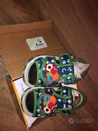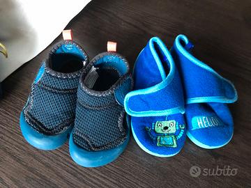 1)Coppia ciabatte bambino con strappo N.22 Coppia di ciabatte per bambino, taglia 22. Sono dotate di chiusura a strappo per una facile regolazione. - Colore blu con dettagli a contrasto. - Design con personaggio robot e scritta HELLO. Dimensione esterna14cm totale per entrambi. 2)Scarpe neonato Primigi N.22 Causa inutilizzo vendo Scarpe Primigi bambino 22 le stringhe sono un pò rovinate, ma la scarpa è in buone condizioni Flexible action system Antishock 3)Scarpe bambino Primigi N.21. scamosc/tessuti/navy Causa inutilizzo vendo scarpe Primigi.21 buone condizioni per stagione invernale.Scatola originale 4)Scarpe bambino geox N.21. Navy/grey Causa inutilizzo vendo scarpe Geox.21 ottime condizioni Scatola originale 5)Sandali bambino Arlecchino N.22 Causa inutilizzo vendo Sandali bambino Arlecchino N.22 buone condizioni.Scatola originale 6)Sandali bambino Sport N.23 Causa inutilizzo vendo Sandali bambino Sport N.23 buone condizioni.Scatola originale 7)Sandali bambino Birilli & Monelli N.22 Causa inutilizzo vendo Sandali bambino Birilli & Monelli N.22 buone condizioni.Scatola originale