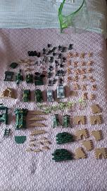 Set soldatini plastica composto da: 2 squadre soldati, 4 carri armati, 2 bandiere, sacchi di protezione,mura, cannoni,2 torri di vedetta, munizioni + sacchetto contenitore con cerniera. Misura soldatino in piedi cm 5 circa. Ideali per gioco , collezione o diorama