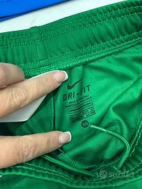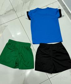 Vendo un set sportivo misto per bambino, ideale per calcio o attività fisica. Il set include tre capi in ottime condizioni T-shirt Puma: Maglia blu a maniche corte, con logo Puma bianco sul petto e dettagli neri e bianchi sulle maniche. Tecnologia Drycell (traspirante). Shorts Nike neri: Pantaloncini neri classici con logo Nike bianco sulla gamba sinistra. Shorts Nike verdi: Pantaloncini verdi con logo Nike bianco sulla gamba sinistra. Adatto per bambini 6/8 anni Tessuto tecnico/poliestere (materiale traspirante, tipico dell'abbigliamento sportivo).