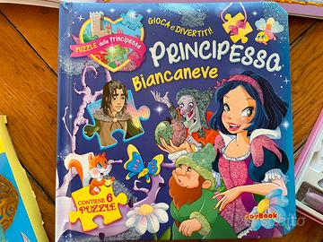 - Libretto con 6 puzzle principessa Biancaneve e storia scritta in stampatello per iniziare a leggere -Joybook copertina bella con glitter