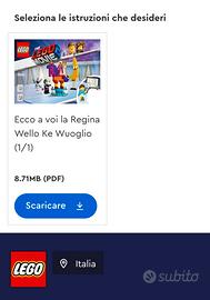 Set the lego movie 2 n 70824 Ecco a voi la Regina Wello Ke Wuoglio Set utilizzato per giocare quindi non adatto a chi li cerca nuovi per collezionismo. Sprovvisto di scatola. Alcuni pezzi di quelli comuni (blocchi colorati semplici) potrebbero essere di altra marca. Alcuni omini potrebbero avere difetti (ad esempio testa che si stacca facilmente). In caso di pezzi differenti dal set di origine (es pezzi di colore diverso o rotti) verrà scritto in annuncio. Riceverete quanto inserito in annuncio e presente in foto. I set possono essere spediti montati o smontati su richiesta, tuttavia li spedisco già montati SOLO a chi me lo chiede in modo da poter mettere la misura adeguata per la spedizione. Set completo come foto. Le istruzioni hanno le copertine mancanti. Omino babbo natale in regalo. Altri set presenti tra i miei annunci. Sconti disponibili in caso di acquisto di più set.