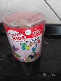 set timbrini per bambini +6anni materiale legno e gomma in regalo 2 cuscinetti di inchiostro blu/nero