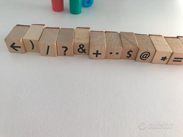 Set di timbrini con numeri, simboli (in legno) e figure (in plastica)