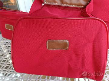 Set di tre borsette in tela canvas waterproof, beauty case di colore rosso di diverse dimensioni. Nuove. Perfette per i viaggi o per organizzare i prodotti di bellezza e altri piccoli oggetti. Dimensioni più grandi: 34x24 cm., base cm.15, la media cm.24x18x10, la piccola cm.17x13, base cm.10, vendo a 15 euro tutte.
