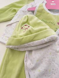 •Tutina intera con piedini (verde chiaro e bianco, morbida e calda)