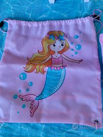 Trolley x viaggio bambina tema " la sirena" misura L 30 x H 47 x P 14 , comprensivo di sacca e zainetto con ulteriore tasca esterna.