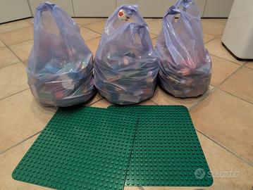 Vendo 3 borse di lego Duplo contenenti vari personaggi come super eroi, Peppa pig, Toys story, animali ecc , macchinine , porte , finestre , basi quadrate, rettangolari , porte, finestre ecc La maggior parte dei mattoncini sono originali lego ma ci sono anche dei pezzi compatibili. Valore pari a circa 300€ 2 basi grandi quadrate verdi Tutti i pezzi sono tenuti benissimo , usati solo in casa (dove non usiamo scarpe) quindi tutto pulito Non spedisco perché sarebbe una spedizione troppo voluminosa Consegna a mano zona Brescia Est o Roncadelle Prezzo non trattabile