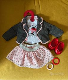 Il set include una giacca con colletto geometrico, una maglietta bianca con un originale disegno, gonna rosa, scarpe e due braccialetti. Tutto perfetto, pari al nuovo! Un vero affare!