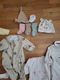 Set di vestiti e accessoti neonato ( body , pagliaccetti, calzini mai indossati, cappelli) taglie : 50,56,62 vari marchi (esempio Chicco,Kiabi..) 18 pezzi totali