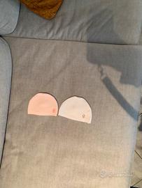 - 2 cuffie neonato bianca e rosa I-do