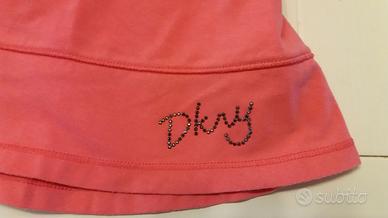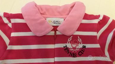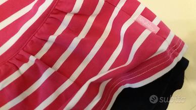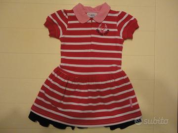 Set Vestitini Bimba Byblos colore rosa a righe bianche con collo a polo e sottogonna blu DKNY colore rosa salmone 18 mesi 100% cotone
