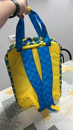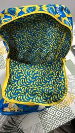 Minions set Chiquita composto da zaino, tutto con immagini dei Minions. Lo zaino ha 2 maniglie per portarlo anche a mano e una tasca con zip sul davanti. Misure zaino larghezza cm 32 lunghezza cm 44 profondità cm 13 circa. L’astuccio ha 2 scomparti chiusi da zip con dei fermi a forma di Banana.