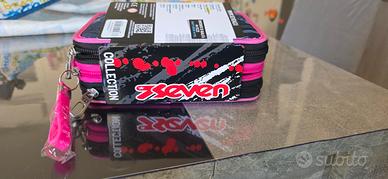 Seven Astuccio Scuola 3 Zip, Triplo Scomparto