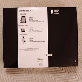 Seven. Kit del tifoso Juventus. Bellissima idea regalo per un vero tifoso juventino. Il kit si compone di una sacca cm 37x47 chiusura con cordini; portafogli cm 12,5x9,5; portachiavi cm 2x55 con fibbia di sicurezza e gancio portachiavi. Prezzo di listino €32,90, in vendita qui a €25,00. ORIGINALE come da ultima foto, in confezione originale.