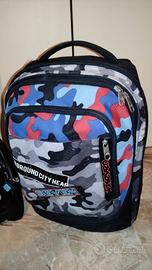Modello interessante in quanto si deve agire su un solo bottone per collegare lo zaino al trolley. Le cinghie per le spalle possono essere inserite in uno scomparto quando lo zaino è sul trolley. Ritiro a mano a Treviso in zona Strada Ovest