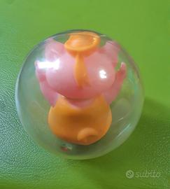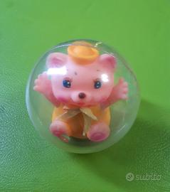 Sfera in plastica trasparente con dentro gattino rosa in gomma. La sfera rotola e il gatto torna in posizione dritta grazie ad un peso. Sonaglio funzionante. Gioco vintage, Nuovo.