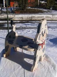 N 2 SGABELLI IN LEGNO FATTI E DIPINTI A MANO RAFFIGURANTI RISPETTIVAMENTE UN CAGNOLINO E UN GATTINO.