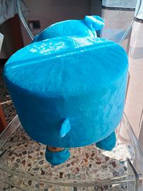 Bellissimo Sgabello artigianale azzurro per bambini a forma di elefante, altezza 25 cm, lavabile a 30 °.