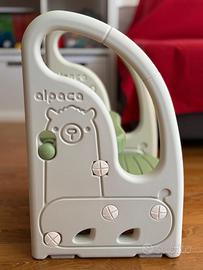 Vendo Sgabello a due gradini per bambini marca ONASTI. Ottimo anche come sedile per Addestramento per WC, Multifunzione, Regolabile in Altezza, Con braccioli, Antiscivolo - Da 1.5 a 5 Anni circa: si adatta da sgabello a 2 gradini in uno sgabello a 1 gradino o in una sedia per bambini. Può sostenere un peso di 60 kg, ma pesa solo 2,4 kg. I cuscinetti assicurano inoltre che il pavimento non si graffi quando lo si indossa avanti e indietro. Realizzato in PE atossico, durevole e senza BPA.