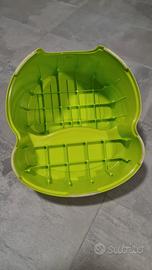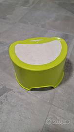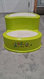 Vendo pratico sgabello a due scalini della Giordani, linea "Little Bear & Friends", ideale per aiutare i bambini a raggiungere il lavandino per lavarsi i denti o le mani in totale autonomia. Caratteristiche principali: Design a 2 livelli: Facilità la salita rispetto ai classici rialzi a gradino singolo. Massima Sicurezza: Superficie dei gradini con rivestimento bianco antiscivolo per una stabilità ottimale anche con i piedini umidi. Base Stabile: Gommini antiscivolo sul fondo (come visibile in foto) per evitare che lo sgabello scivoli sul pavimento. Leggero e Robusto: Facile da spostare anche per il bambino, ma molto resistente grazie alla struttura rinforzata interna. Facile da Pulire: Realizzato in plastica resistente di alta qualità. Condizioni: L'oggetto è usato ma in ottime condizioni, perfettamente pulito e igienizzato. Le grafiche sono ancora ben visibili e integre. Colore: Verde acido brillante con dettagli bianchi.