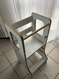 Sgabello montessoriano di legno come nuovo usato pochissimo manca solo una barra di protezione come si vede in foto ed è regolabile in varie altezze