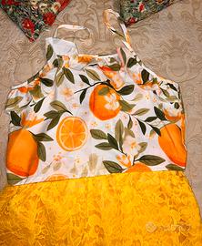 SHEIN completo nuovo, con gonna e top. Taglia 12 anni o XS adulta, altezza cm155, modello “gitana", con fodera altezza coscia ed elastico in vita. Comodo all'indosso e molto morbido al tatto. La gonna è più lunga dietro, fantasia macramè, molto alla moda! Colore giallo oro! Il top fantasia agrumi! Nuovo, mai indossato. Errore taglia all’acquisto.