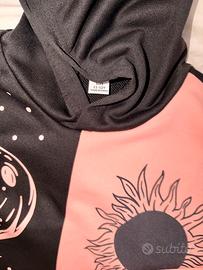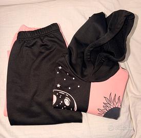 Tuta bicolore bimba, come nuova (indossata una sola volta), taglia 12 anni (veste meno), marca Shein. Maglia corta con cappuccio e pantaloni con elastico alla caviglia. Colori nero e rosa.