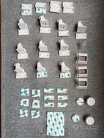 Inclusi i seguenti kit. Kit blocca cassetto magnetico che include: 10 blocca cassetti completi di cui 2 mai usati (ancora con biadesivi 3M attaccato), 8 sono stati utilizzati ma è possibile mettere gli altri biadesivi in dotazione. 8 parti fisse d riserva del blocca cassetto in caso si rompessero. 3 Dime di montaggio. 2 Chiavi magnetiche per apertura. 6 + 6 Biadesivi di riserva 3M già ritagliati. 1 Biadesivo 3M da ritagliare. Kit Paraspigoli: 14 Paraspigoli trasparenti nuovi 4 Paraspigoli trasparenti utilizzati 8 Paraspigoli grigi utilizzati. I paraspigoli utilizzati possono essere riutilizzati usando altro biadesivo. Kit Copri prese: 17 Copri prese per bambini 2 Chiavi per estrazione copri prese. Aggiungo zanzariera elasticizzata compatibile con qualsiasi ovetto,navicella e passeggino gruppo O.