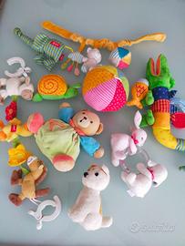 Sigikid catena per passeggino e altri 8 giochini di stoffa per neonato