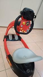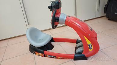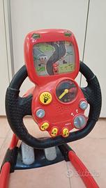 Postazione simulatore guida Cars, con volante e pedali e numerosi tasti con suoni al display. Con un inserto apposta si può anche collocare uno smartphone e simulare nuovi percorsi.