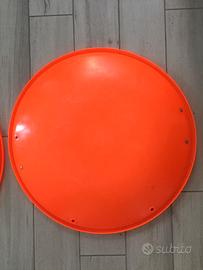 Vendo due slitte piattino in plastica con maniglie integrate per discesa sulla neve, colore arancione. Prezzo 20 euro ciascuna.