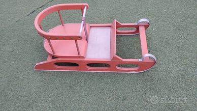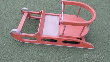 vendo slitta per bambini da tirare, unica nel suo genere, fatta da mio padre negli anni '70. Perfettamente funzionante, basta aggiungere un cavetto per trainarla.