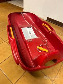 È dotato di un cordino per il traino e maniglie laterali per frenare e sterzare.
