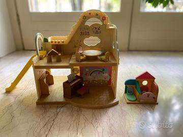 Sylvanian Families - Raimbow Nursery- Asilo con pulmino e bagnetto. Il gioco è quasi nuovo e ha la sua scatola.
